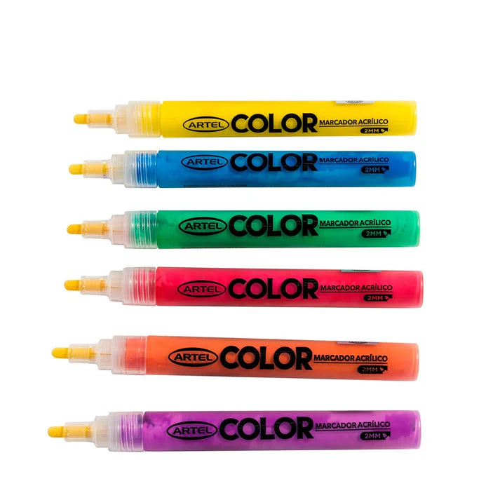 MARCADORES ACRÍLICOS BÁSICOS 6 UN PUNTA 2 MM ARTEL
