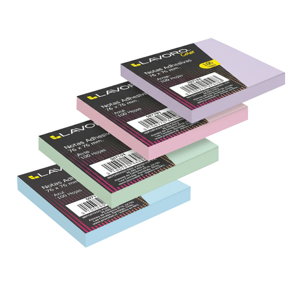 PACK 4 NOTAS ADHESIVAS TONOS PASTELES 76 X76 MM LAVORO
