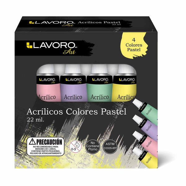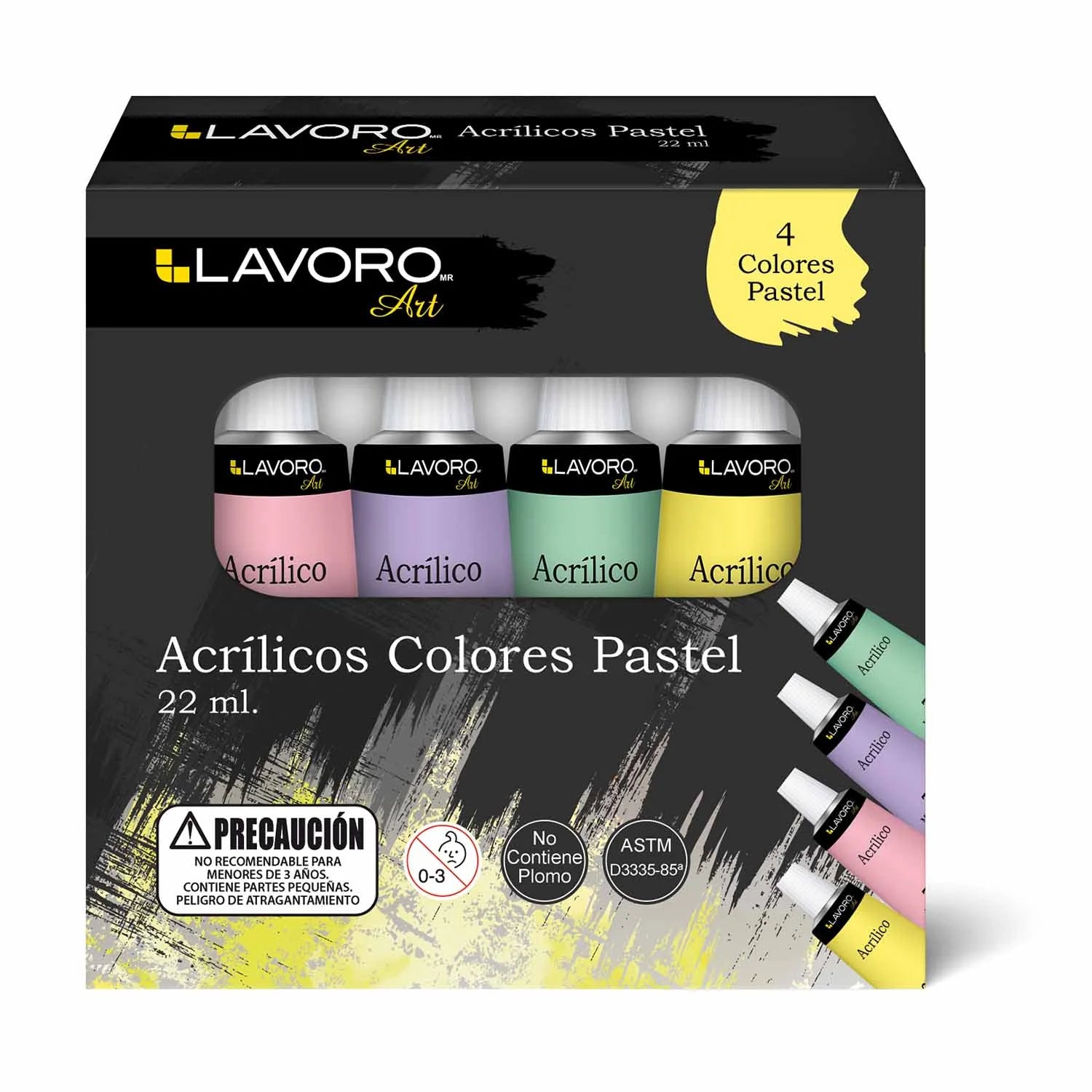 SET ACRILICOS COLORES PASTEL 22 ML 4UN LAVORO